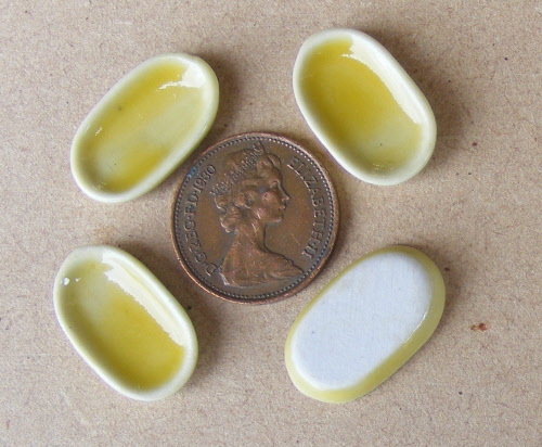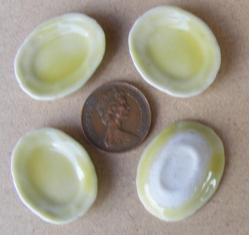 4 Yellow Oval Ceramic Plates With A Raised Edge