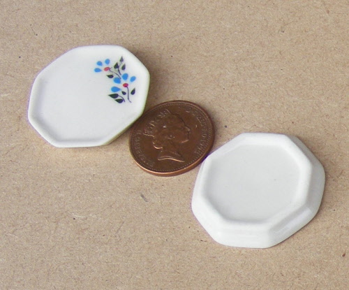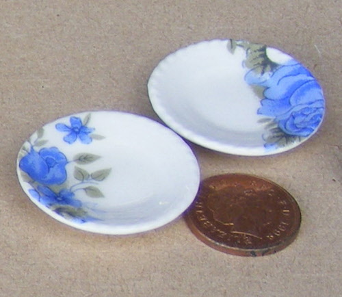 With a hand painted blue floral motif each plate is 3.2cm diameter