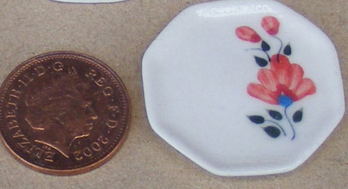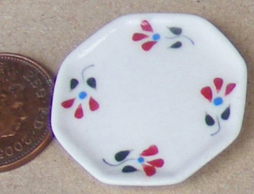 An Octagonal Ceramic Plate With A Hand Painted Red Floral Motif