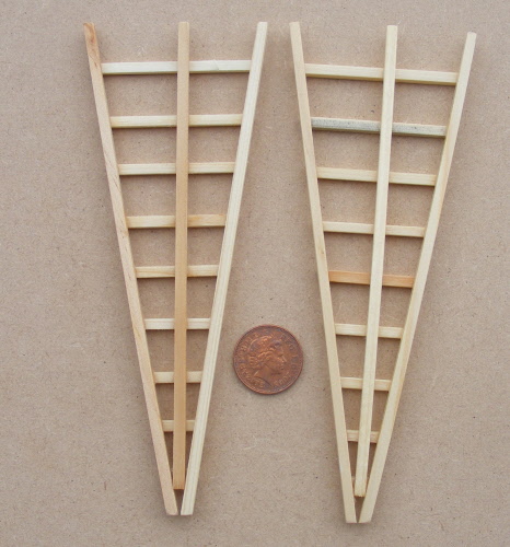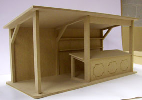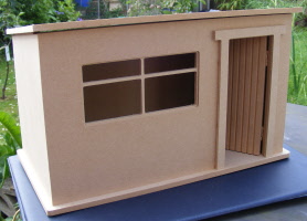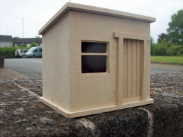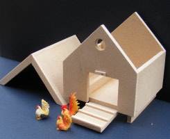 The Chicken Coop has been designed and made in the UK and is 8cm x 7.2cm at the base x 9.5cm high with the roof on and is made from untreated and unstained wood to allow you to stress and paint it to suit your taste