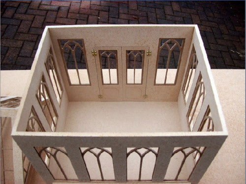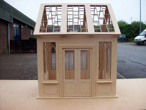 The double opening doors have hinges. The windows have been manufactured from 2 mm MDF. The window rebates have been machined down to 4 mm to allow you to use your own glazing.