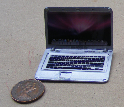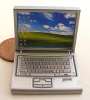 Dolls House Miniature Silver Non Working Laptop Computer