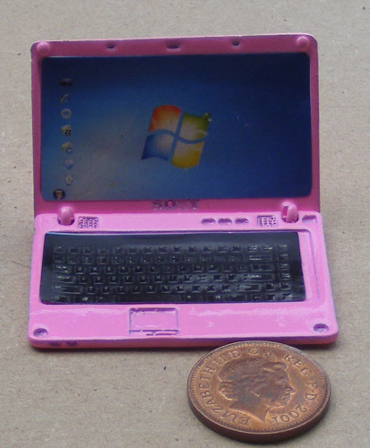 Dolls House Miniature Non Working Pink Metal Laptop Computer