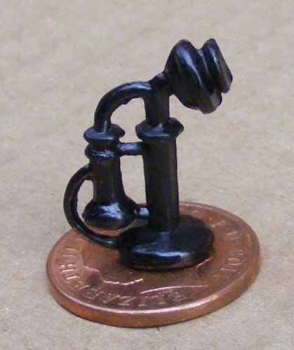 The non working metal one piece telephone is 0.8cm diameter at the base x 2.2cm high