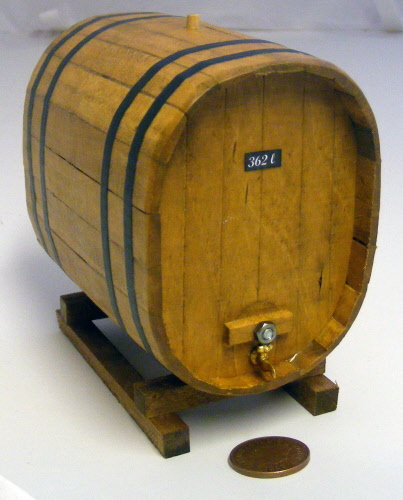 A Large Oval Wooden Barrelwith a non working metal tap on a wooden stand