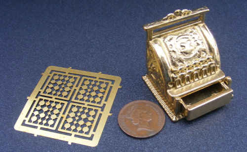 With an opening draw & metal money which is joined together and need to be separatedThe till is 3.2cm x 3.2cm at the base x 3.7cm high