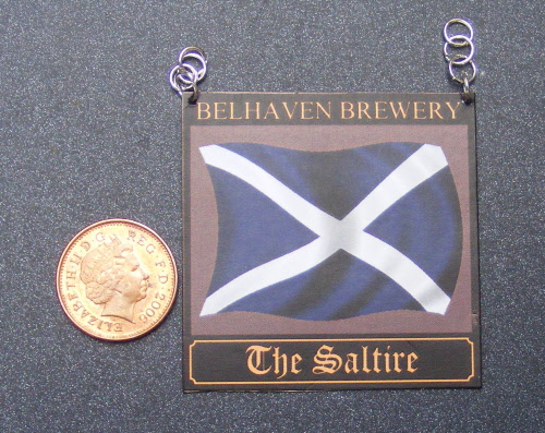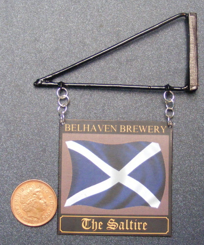 This is a beautiful double sided sign for your dolls house miniature pub / tavern. This stunning sign and wall bracket is hand made in the UK. The sign is approximately 5cm wide x 6cm high