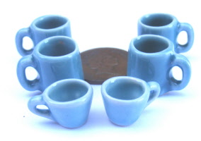 4 x Turquoise Blue Coffee Mugs & 2 Coffee Cups