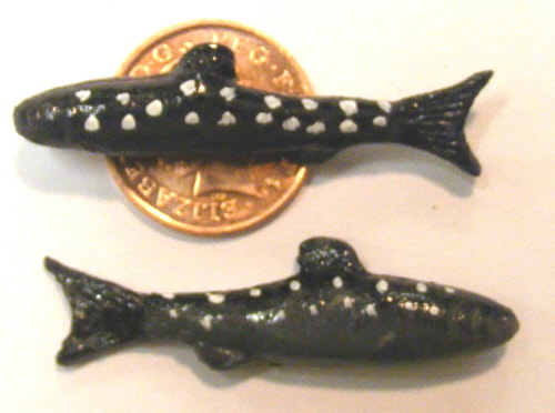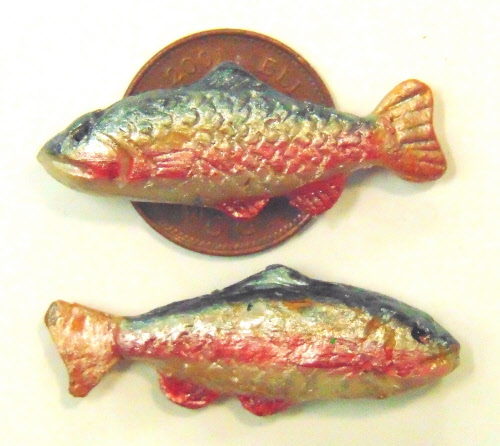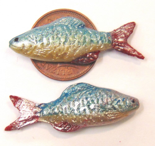 These fish are made from air dried polymer clay and are approximately 3.6cm long